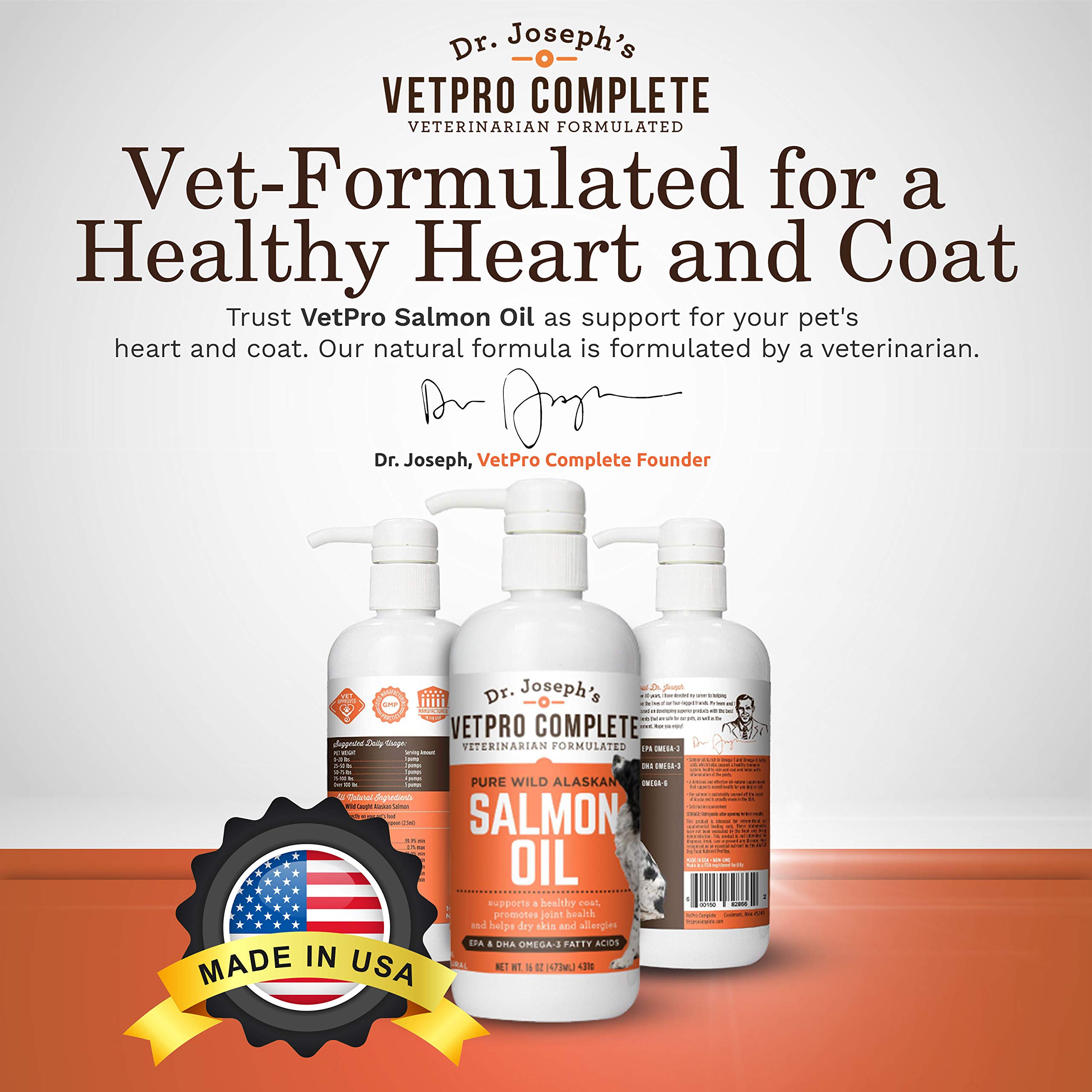 - ALL-NATURAL, MADE IN THE USA, SUSTAINABLY SOURCED – Vet Pro Complete’s unique formula contains only the highest quality Salmon Oil with no chemicals or byproducts. Each bottle is made in the USA, in a Good Manufacturing Practice (GMP) certified process.
