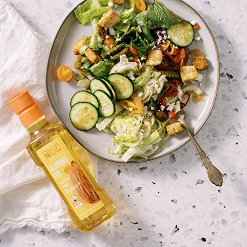 Details: Our Almond Oil is made from fresh, fragrant almonds off the tree, which we press to gently extract their delicate oils. This gives you a mild, clean oil with a neutral flavor you’re sure to love in salad dressings, marinades, your favorite baking recipes, and more. Because it can take the heat in the kitchen, it’s great for high-heat cooking techniques (420°F). Its high smoke point allows you to safely sear, bake, stir-fry, or saute without the almond oil breaking down. Use almond oil as a replacement for traditional olive or canola oil. Naturally refined almond oil is as versatile as it is delicous, and it’s great for mixing with or pouring on anything you want to eat. Try it as a stir-fry oil or for roasting organic asparagus, potatoes, carrots, broccolini, and more! It can also make a nourishing oil for skin and hair.BetterBody Foods is dedicated to bringing you delicious cooking options to boost your physical well-being and to giving you healthy alternatives to guilt-inducing foods. Being healthy doesn’t have to be bland—it should be enjoyable! That’s why we make sure to use only the highest-quality and tastiest ingredients possible for your cooking, baking, and other culinary needs.