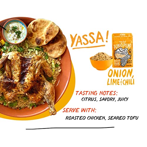 - WEST AFRICAN FLAVOR PILAF: Inspired by Senegal’s most popular dish, Yassa chicken, our yassa onion, lime and chili fonio rice pilaf with a juicy, citrus, savory taste offers the vibrant and comforting flavors of caramelized onions, smoky chili pepper heat, and juicy lime. Serve with roasted chicken, seared tofu or grilled seafood and mango